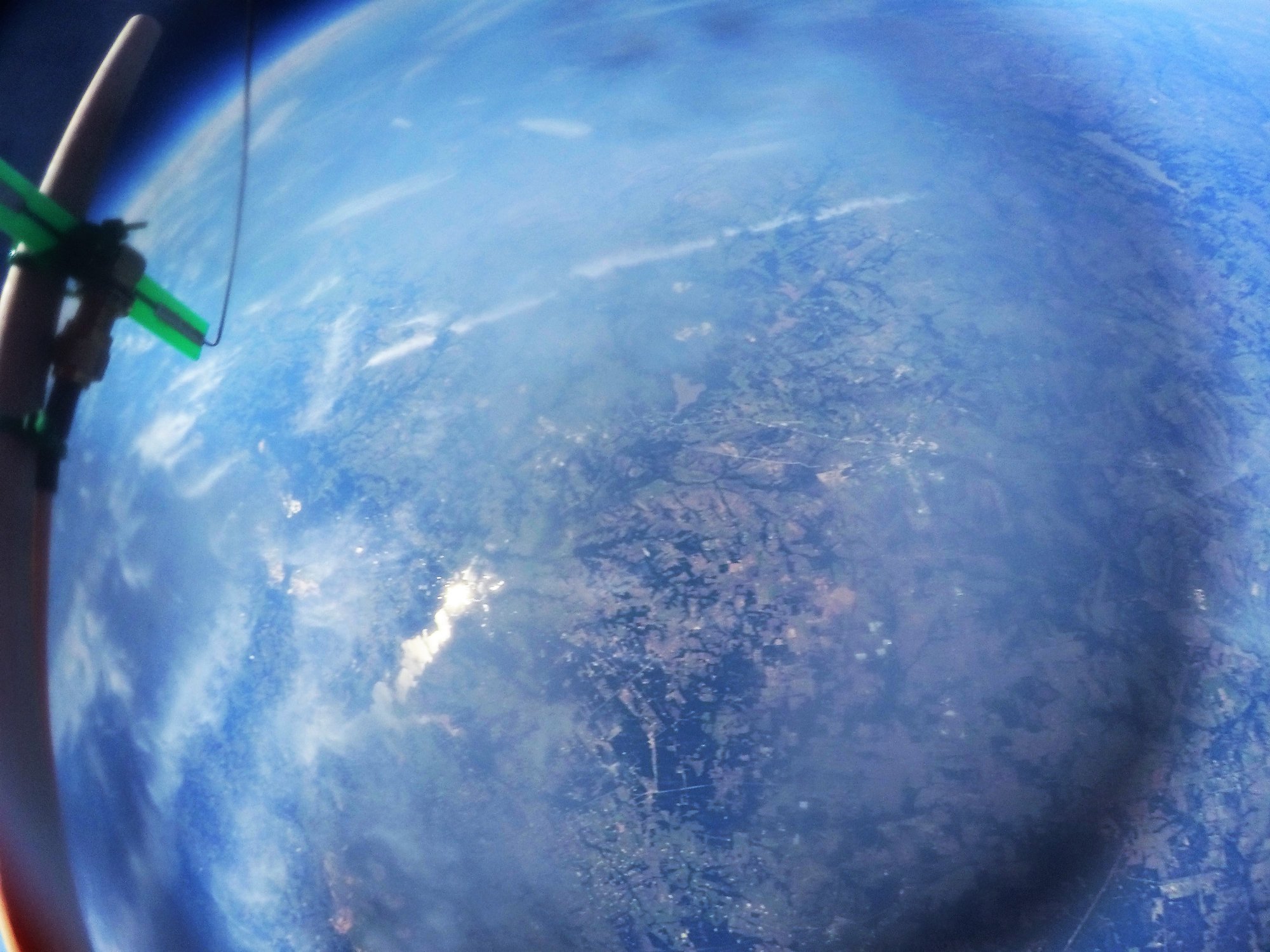 From launch to balloon burst was just under 2 hours and the descent was about :30 minutes. The distance from launch to recovery was ~40 miles on this particular day. Recovery was not straightforward and there were two attempts and eventually a stream crossing into thick wooded areas.